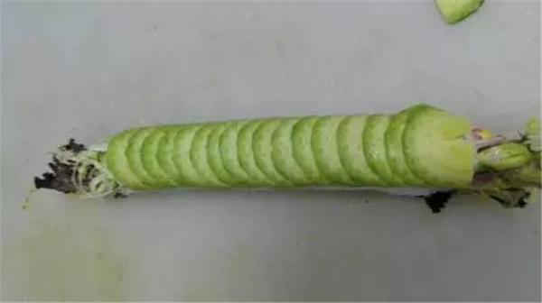 7、壽司卷實(shí)后,將牛油果片疊蓋在壽司卷上,牛油果壽司就做好了,最后,我們將它分段切開(kāi),搭配上由綠芥末和日本醬油調(diào)制的蘸料,一份牛油果壽司即可享用。