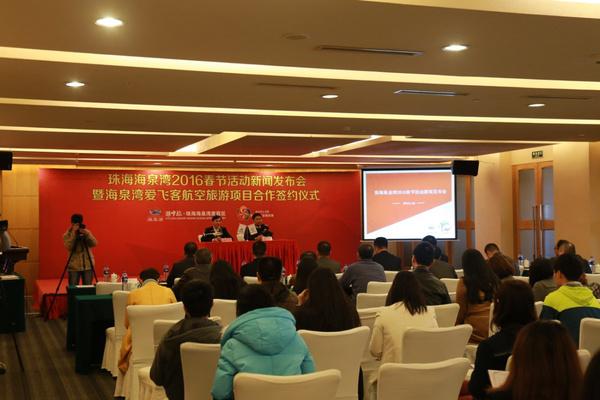 1月30日,珠海海泉灣2016新春主題活動新聞發(fā)布會暨海泉灣愛飛客航空旅游項目合作簽約儀式在港中旅·珠海海泉灣度假區(qū)舉行,中航工業(yè)通飛副總經理沙長安先生、愛飛客航空俱樂部董事長喻平先生、愛飛客航空俱樂部副總經理王思利先生、珠海中航通用飛機客戶服務有限公司副總經理吳代斌先生、港中旅(珠海)海泉灣度假區(qū)總裁馮剛先生、 港中旅(珠海)海泉灣度假區(qū)助理總裁黃凱一先生等出席了當天活動。發(fā)布會上,黃凱一先生介紹了海泉灣2016春節(jié)主題活動內容,在2月7日至2月22日春節(jié)期間,海泉灣以“溫泉美食嘉年華 金猴賀歲海泉灣”為主題,推出六大特色活動,觀海上煙花,看最萌美猴王,坐酷炫直升機,品地道美食,泡海洋溫泉,放花燈祈福年。
