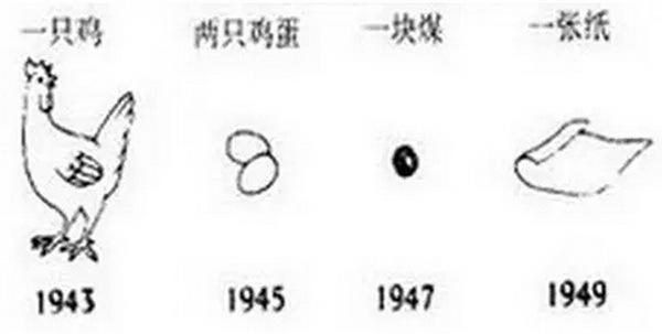 ↑↑這是一張網(wǎng)圖,僅供參考。它展示了上世紀(jì)40年代100元法幣購(gòu)買力的下降。