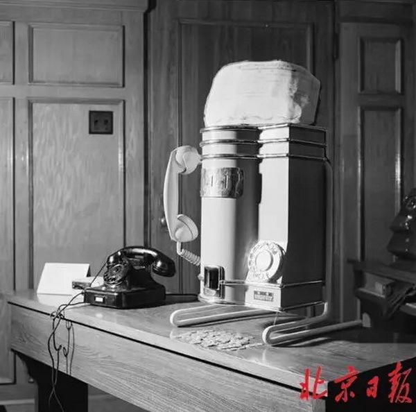 ↑↑1958年的腦洞發(fā)明——這臺(tái)公用電話,自動(dòng)收錢不退錢。外觀時(shí)髦,但實(shí)用性如何呢?小編倒是更感興趣它上面的大布袋是干嘛的,難道是放硬幣的嗎,這不科學(xué)呀。