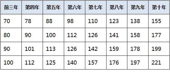 表格中的租金收益、回報(bào)金額、需貼補(bǔ)的金額為10年總共所需的金額;