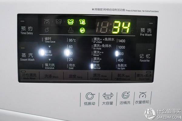 右邊是觸摸屏和LED面板,最高95度洗衣,脫水只有4檔可調(diào) ,可以顯示洗衣剩余時(shí)間。