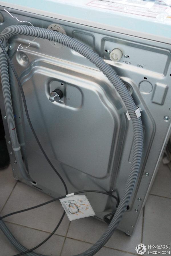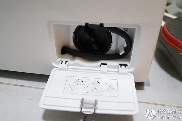 門板和控制面板是一體的,其實(shí)不是個(gè)好設(shè)計(jì),開始洗衣服后不能中途打開洗滌劑盒,而且開門特別占用空間。