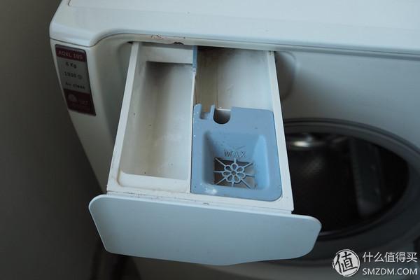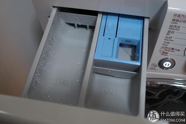 投放盒內(nèi)部,左邊是洗滌劑,右邊是預(yù)洗用的洗滌劑盒柔順劑盒,大眾化設(shè)計(jì)。