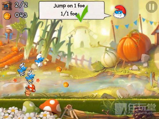 游戲以 2D 橫版跑酷的形式呈現(xiàn),玩家要幫助可愛(ài)的藍(lán)精靈們不斷躲避障礙、收集金幣,還要把被困起來(lái)的其他藍(lán)精靈全部解救出來(lái)才算闖關(guān)成功。畫(huà)面和動(dòng)畫(huà)片里的一樣,明亮鮮艷的卡通風(fēng)格,在豐富的場(chǎng)景中玩家將可以看到熟悉的蘑菇小屋、礦山、森林,和格格巫的城堡。配樂(lè)也非常的輕松活潑,讓人不知不覺(jué)就沉浸在這個(gè)童話故事里。