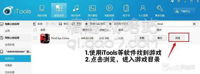 1、使用iTools等軟件找到游戲。