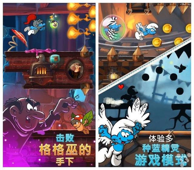 游戲中邪惡的格格巫施展了濃霧法術(shù),把鎮(zhèn)上絕大多數(shù)的小精靈都抓走了,唯有玩家幸存下來。為了幫助自己的伙伴們,玩家除了要趕緊逃離濃霧外,也必須搜集各地的道具來解救其他的小精靈。游戲以 2D 橫版跑酷的形式呈現(xiàn),玩家要幫助可愛的藍精靈們不斷躲避障礙、收集金幣,還要把被困起來的其他藍精靈全部解救出來才算闖關(guān)成功。畫面和動畫片里的一樣,明亮鮮艷的卡通風格,在豐富的場景中玩家將可以看到熟悉的蘑菇小屋、礦山、森林,和格格巫的城堡。配樂也非常的輕松活潑,讓人不知不覺就沉浸在這個童話故事里。