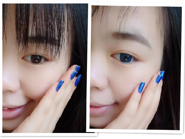 這是對(duì)比圖,裸眼和帶了海藍(lán)色美瞳的眼睛,瞳孔放大,感覺(jué)還有點(diǎn)點(diǎn)亮膚色的作用。可麗博clearcolor燃彩彩色隱形眼鏡依據(jù)東方人的角膜以及瞳孔的大小等特質(zhì)研發(fā)而成。