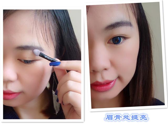 1號(hào)色在眉骨處提亮,可以讓眉形顯得更為精致,用米白色或者珠光白都行~