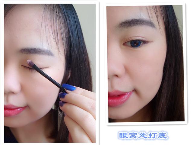 2號(hào)色在眼窩處打底,因?yàn)橹槐饶w色深一點(diǎn),所以要來(lái)回多刷幾次才顯色~