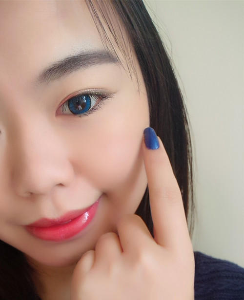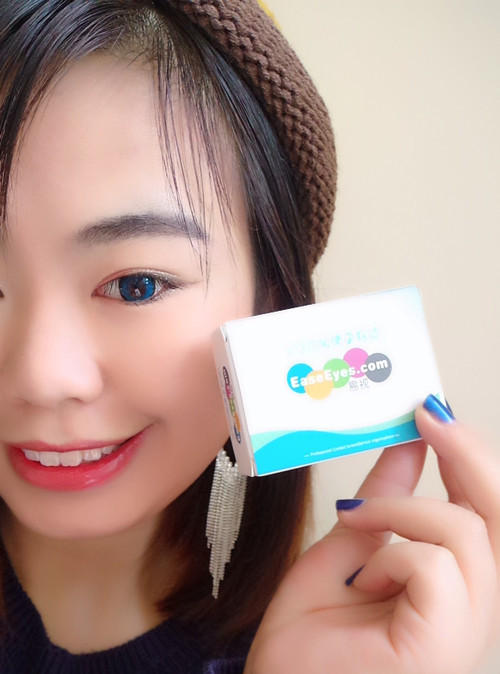 這次是突破了一下自己對(duì)于美瞳色彩的選擇,因?yàn)樯钪械奈冶容^低調(diào),一般選擇的都是黑色、棕色、巧克力色之類的美瞳,跟瞳孔的顏色比較接近,看上去很自然,而這種顏色比較靚麗的確實(shí)是第一次,之前有嘗試過(guò)紫色,可惜失敗了,大概是因?yàn)閵y容打造不合拍,所以留下了陰影,這次看到這款海藍(lán)色真的是來(lái)回糾結(jié),最后還是買了下來(lái),畢竟藍(lán)色是我最愛(ài)的顏色~
