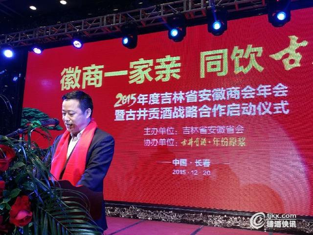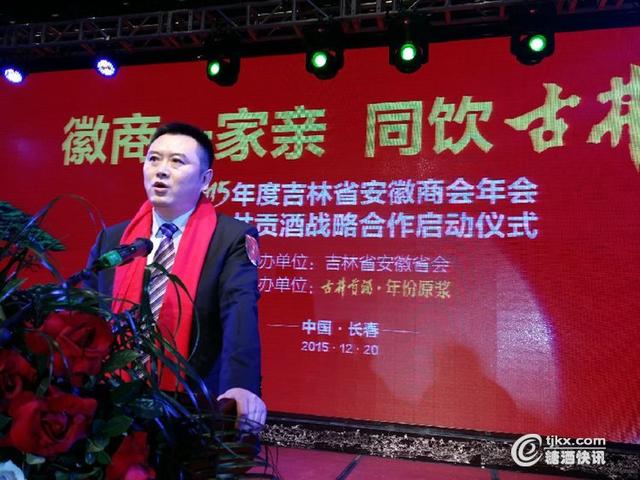 2015年12月20日,由吉林省安徽商會、長春市徽商貿(mào)易有限公司、安徽古井集團共同舉辦的“2015年度吉林省安徽商會年會暨古井貢酒戰(zhàn)略合作啟動儀式”在吉林省雪立方運動摩爾一樓奧運廳盛大啟幕。