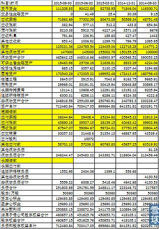 資產(chǎn)負債表:(2015三季度)