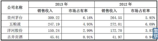 根據(jù)口子窖的招股說明書,公司產(chǎn)品在全國市場占有率如下: