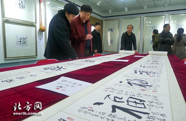 天津北方網(wǎng)訊:春節(jié)貼“福”在我國民間由來已久,“福”也是最古老的漢字之一。1月20日,“孫榮剛輯古今百福書法展”在河?xùn)|區(qū)政協(xié)書畫展覽廳開幕,本市資深書法、篆刻家孫榮剛,搜集殷墟甲骨、先秦鐘鼎和各代碑碣,乃至古今書家、先賢的300多個(gè)福字,從中選出118個(gè)為津城百姓送“福”,喜迎新春佳節(jié)。本次展覽將持續(xù)到26日。