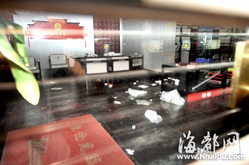 九峰茗茶屏山店內(nèi)一片狼藉