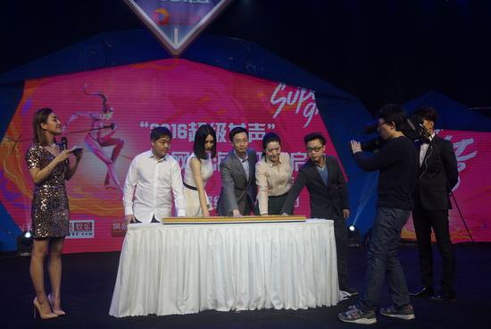 在魅力炫光的舞臺(tái)上,難得一見的超大金匾終于亮相,尚雯婕、BoBo視頻事業(yè)部總經(jīng)理張仕強(qiáng)、網(wǎng)易傳媒移動(dòng)產(chǎn)品部副總經(jīng)理姜靖華、網(wǎng)易娛樂總監(jiān)陳志亮以及芒果TV市場(chǎng)部高級(jí)經(jīng)理馮紫劍一起按下手印,攜手開啟網(wǎng)易BoBo海選直通車。金光閃閃的金匾寓意照亮每一個(gè)人bling bling的夢(mèng)想。沒錯(cuò),BoBo就是一個(gè)圓夢(mèng)的舞臺(tái),這次網(wǎng)易娛樂聯(lián)合網(wǎng)易BoBo實(shí)力加盟超級(jí)女聲海選,勢(shì)將圓夢(mèng)進(jìn)行到底!