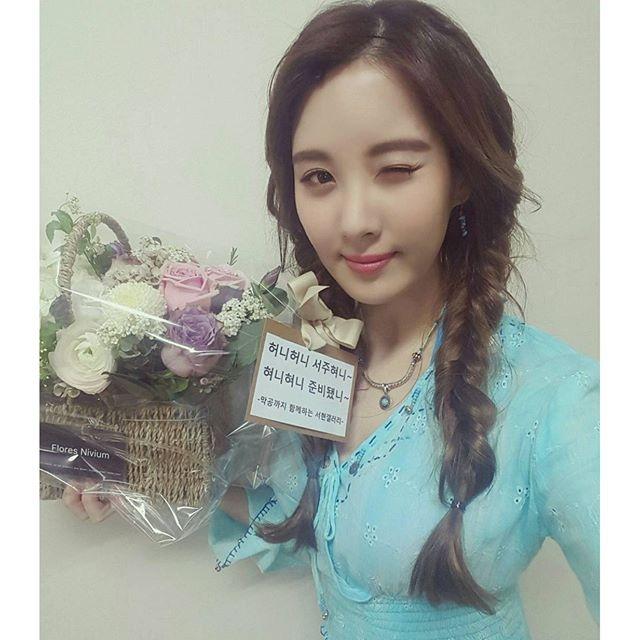 “小甜甜小甜甜~徐珠賢 來祝賀第一場公演太感謝啦~^^? #媽媽咪呀 ?”