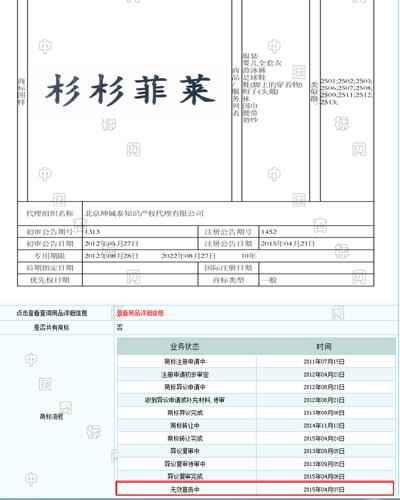 根據(jù)公開資料,“杉杉菲萊”申請人為徐治強(qiáng)。2011年7月,申請人針對這一商標(biāo)提出申請,初審公告時(shí)間為2012年5月。