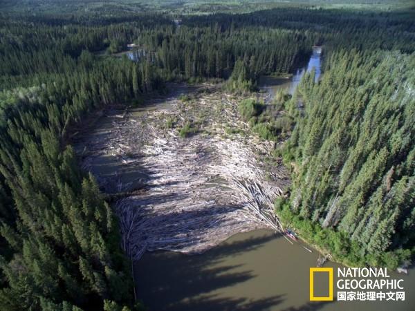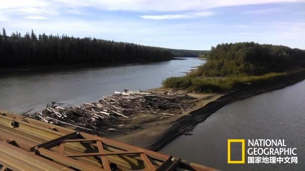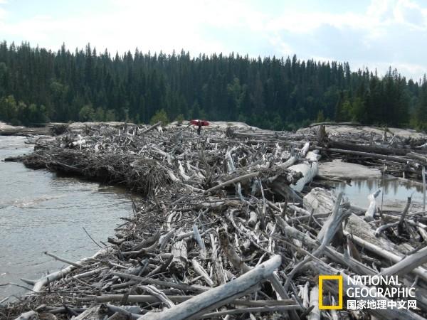 在加拿大西北地區(qū)的斯來夫河(Slave River)里,大量漂流木聚集于此,看起來就像一艘與河同寬的超級木筏。同樣的場景記錄在亞歷山大.麥肯齊1789年的日記中,當(dāng)時(shí)他正在探尋通往大西洋的路線。木筏后部竟然已經(jīng)長出了新生的樹木。