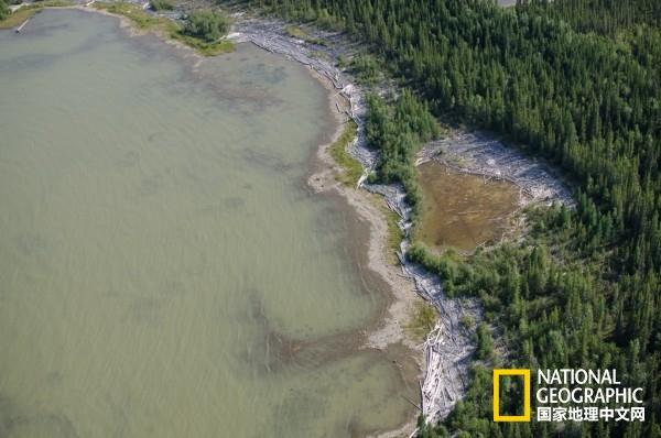 大量腐爛的漂流木堆砌在云杉林附近,也標(biāo)識(shí)著過去數(shù)千年里湖岸線的位置。