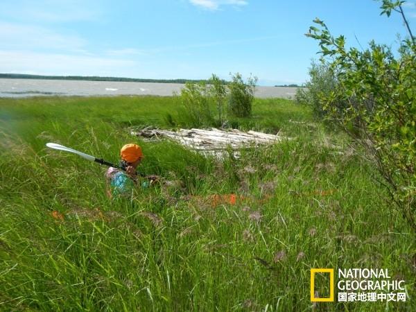 在斯來夫河,各種蘆葦屬植物和雜草“捕獲”了成排的漂流木和隨之而來的泥沙。其實(shí)漂流木堆積處的下方,腐爛的木頭已深陷泥沙之中,有數(shù)米之厚。畫面中正在忙碌的是Ellen Wohl。