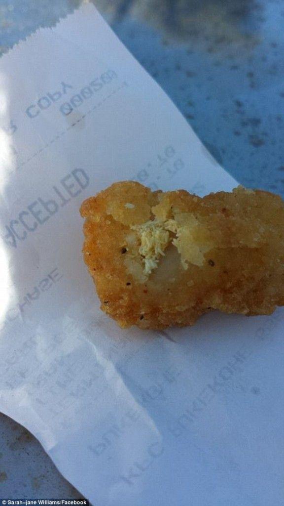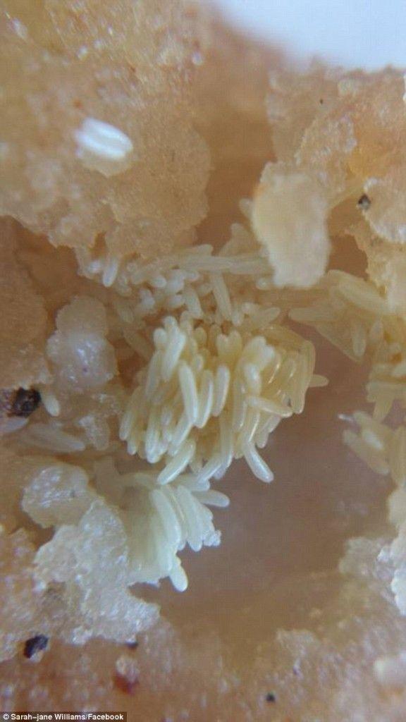 莎拉發現雞米花肉里塞滿蒼蠅卵,馬上拍下照片上傳至臉書并說明:「這是我剛剛在布加高賀的肯德基點的食物,我暫時不會再去光顧了。」
