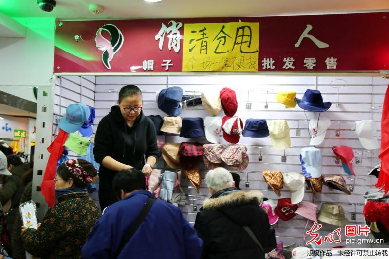 不少剛從小天意"血拼"完的人都拎著大包小包,有玩具、文具,還有鍋碗瓢盆、日用百貨。商城門(mén)口,玻璃上貼著通知,"12月9日停止?fàn)I業(yè)"。