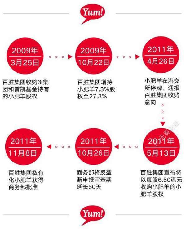 2009年3月,百勝通過旗下投資公司購買了小肥羊20%股份。對此當(dāng)時有人用“以后可以在肯德基里吃火鍋了”來進行調(diào)侃。到了2012年2月,百勝以近46億港元現(xiàn)金完成對小肥羊的私有化,使其總持股量達93.2%,剩余6.8%股權(quán)則由小肥羊創(chuàng)始人張鋼和陳洪凱持有。