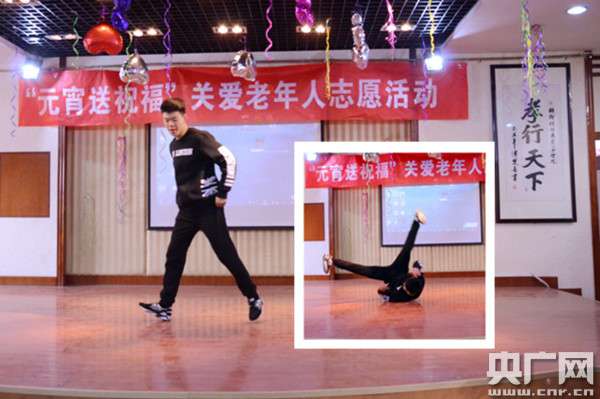 “高哥”崔明東為老人們表演街舞