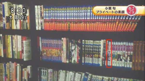 在節(jié)目的截圖中可以看到漫畫書柜里基本都是非常健康(?)的全年齡向漫畫,在第二層里出現(xiàn)了一本《銀魂》的漫畫,從書脊看是單行本第1卷。而銀魂后面則是9本《死神》,難道小栗旬本人其實(shí)愛《死神》超過《銀魂》?