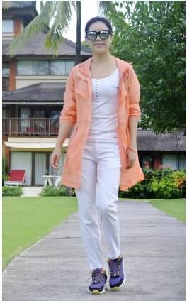 中長款皮膚風(fēng)衣是思凱樂近年來一直都有別于其他同類品牌的亮點產(chǎn)品,這一季流行的橘粉色、白色、黃色都有中長款的選擇,更為值得一提的是,這款中長款皮膚衣還采用了緊扣的防紫外線面料,并有鐳射孔設(shè)計,讓這件皮膚衣不僅色彩利落,還具有良好的透氣性。