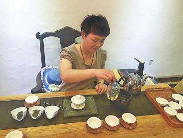 迦蘭茶坊彭藝在為賓客泡茶本版照片均由記者祝田園 攝海峽兩岸茶業(yè)交流協(xié)會山東分會秘書長葉松華本報記者 祝田園