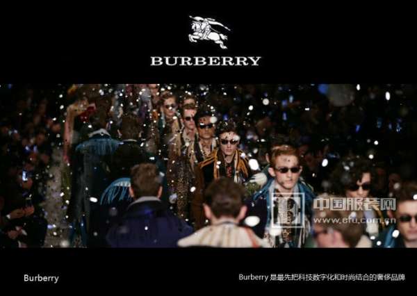 說到這些,簡單提一下新科技的東西,那么我想接下來重點想講的品牌是BURBERRY,BURBERRY是這次我跟牛頓商學(xué)院,我們?nèi)ビヱR丁學(xué)習(xí)的時候,今天圣馬丁的專家也在,我們接觸到BURBERRY的一個案例,其實之前都有在看,或者作為消費者我們在購買它的產(chǎn)品,但是我們對它背后的東西我覺得還是不夠了解。我們剛才做奢侈品的老師也剛才講了,是這樣一個情況,但是普遍存在奢侈品品牌老化的問題,這是不容回避的,當(dāng)然我們做的休閑服,美邦也存在這些品牌老化的問題。當(dāng)時我們問了一個問題,問當(dāng)時來給我們講課的專家,BURBERRY的專家,我們問BURBERRY如何解決品牌老化問題,其實他沒有全面回答我,他說BURBERRY是第一個將科技,結(jié)合在他的品牌里面的奢侈品品牌。