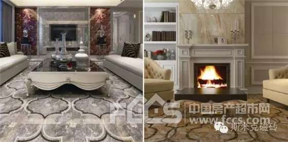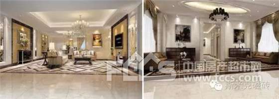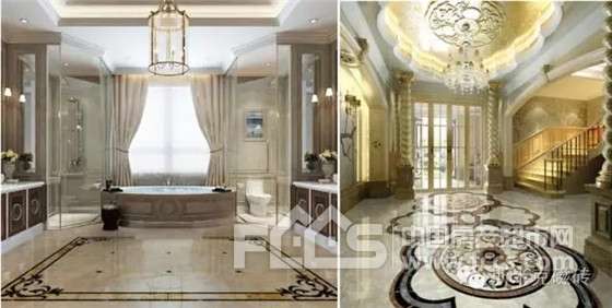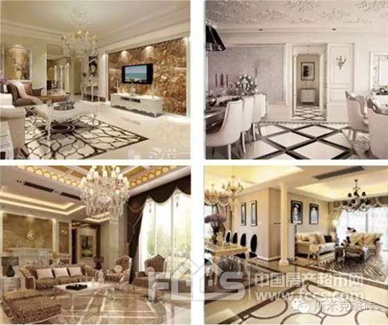 大理石瓷磚——自然美感、花紋高貴。如斯米克“玻化大理石”系列的鵝毛金、帝諾米黃、奢華的索菲特金和金碧輝煌等紋理圖案都十分適合歐式風(fēng)格。