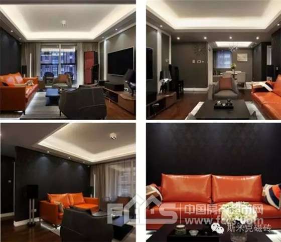 使用同一色系進(jìn)行組合,如深灰色與淺灰色,讓整個(gè)空間顯得清靜,素雅,而橙色沙發(fā)讓整個(gè)空間增加律動(dòng)感。