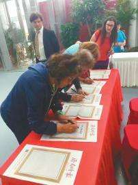 觀眾在館內(nèi)參觀 國(guó)外藝術(shù)家在展覽現(xiàn)場(chǎng)簽到