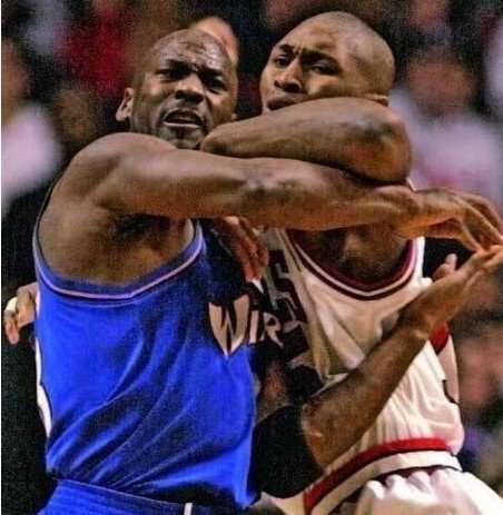 阿泰的脾氣永遠是那么火爆。他是個直性子,所以他把玩命防守當成了對對手的尊重。特別是遇到喬丹這種對手的時候,阿泰也不處于下風(fēng),怎么著也要想辦法帽他一個。