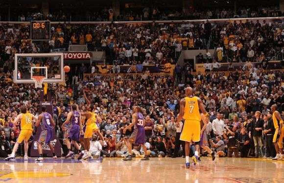不是冤家不聚首。2009年夏天,阿泰轉(zhuǎn)投了湖人,這下他跟科比成了隊友。阿泰在湖人干過最偉大的事情,便是2010年西決對太陽G5比賽最后時刻的那次補籃絕殺了。