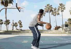 運幾次球后直接大跨步轉(zhuǎn)身跳投