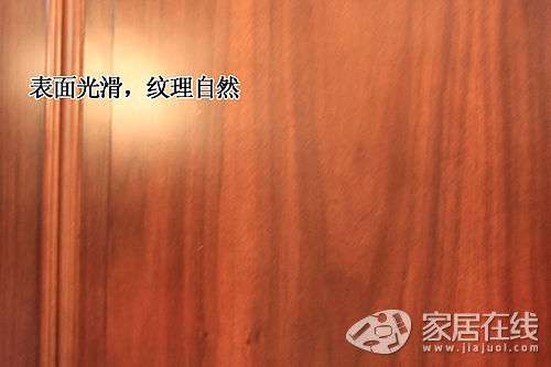 一、珊嘉這款木門采用實(shí)木壓縮板作芯板,表面熱壓胡桃木,最后經(jīng)過噴漆處理。家居在線小編近觀木門,感覺紋理自然細(xì)致,整體偏紅色調(diào),在燈光下顯得柔和典雅。這種天然的木紋紋理和色澤,對(duì)崇尚回歸自然的裝修風(fēng)格的家庭來說,無疑是最佳的選擇。