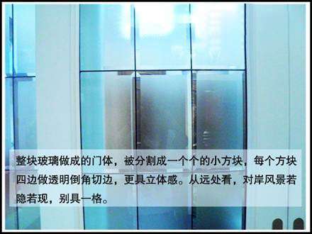 根據(jù)門的用途,進(jìn)行玻璃材質(zhì)與造型的選擇。如果是餐廳與客廳之間的隔斷門,可選用專賣店展示的布紋樣品門。整塊玻璃分成一個(gè)個(gè)的小方塊,每個(gè)方塊四邊做透明倒角切邊,更具立體感。從遠(yuǎn)處看,對(duì)岸風(fēng)景若隱若現(xiàn),別具一格。