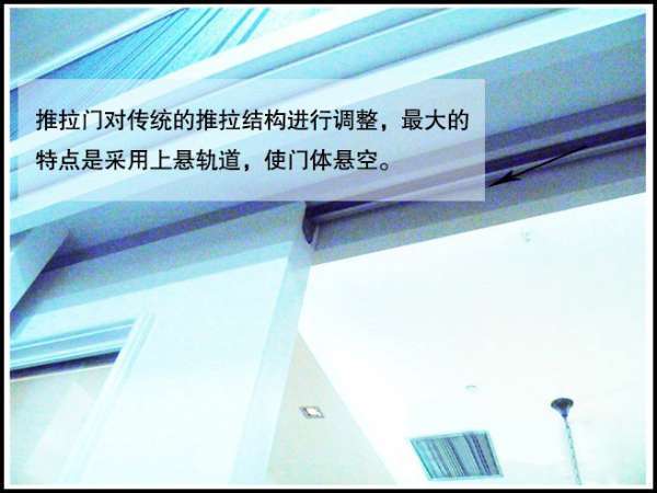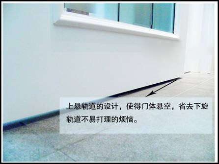 對(duì)于喜歡推拉門的消費(fèi)者來說,推拉門最大的困擾就是軌道的清潔。這款推拉門對(duì)傳統(tǒng)的推拉結(jié)構(gòu)進(jìn)行調(diào)整,最大的特點(diǎn)是采用上懸軌道,門體懸空,省去地軌不便捷的煩惱。不用擔(dān)心地軌會(huì)絆倒人,也不用擔(dān)心腳底的灰塵會(huì)聚集到地軌難以打理。不論地面是鋪瓷磚或地毯,都可與其保持統(tǒng)一性。