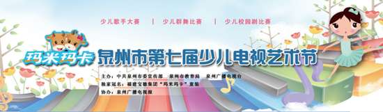 3月至6月,由中共泉州市委宣傳部、泉州市教育局、泉州電視臺(tái)聯(lián)合主辦的“瑪米瑪卡”杯2015泉州市第七屆少兒電視藝術(shù)節(jié)報(bào)名啟動(dòng)啦!瑪米瑪卡已連續(xù)7屆獨(dú)家冠名泉州市少兒藝術(shù)節(jié),本屆藝術(shù)節(jié)將繼續(xù)為廣大少年兒童打造一個(gè)更好的藝術(shù)展現(xiàn)舞臺(tái),提升少兒活動(dòng)的良好社會(huì)影響力,正確引導(dǎo)少年兒童文化藝術(shù)活動(dòng)的發(fā)展方向,大力推動(dòng)少年兒童文化教育事業(yè)的健康發(fā)展,打造一個(gè)真正屬于少年兒童的盛大節(jié)日。