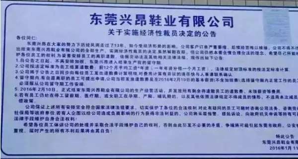 2016年年初,九興這一全球最大時裝鞋制造商的中國大陸最大制造工廠宣布其完成了階段性使命。據(jù)東莞興昂周一的公告,公司結業(yè)時間將為2月10日,東莞興昂在員工公告中稱將按照法定程序進行遣散,并補償遣散員工費用。母公司九興集團人力資源部主管鐘偉杰表示,是次調整是關閉東莞興昂所有生產單位,但仍保留研發(fā)、行政等部門,裁員涉及員工1900多人,停下的產能將往東南亞國家轉移,原因則是人工成本的上升。