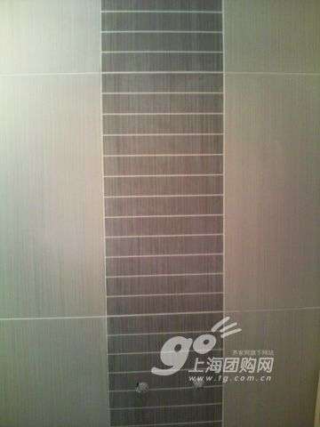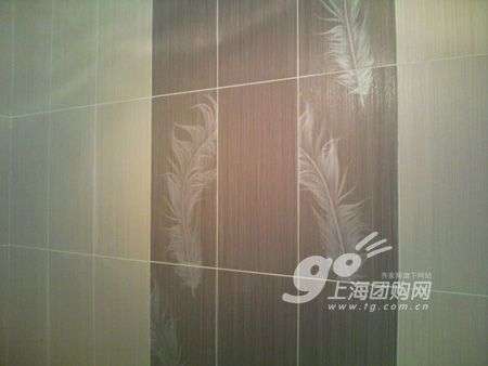 衛(wèi)生間一角,瓷磚上面有很多羽毛的圖案,很飄逸!