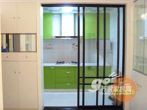 廚房綠色的櫥柜很清新,看上去很舒服。