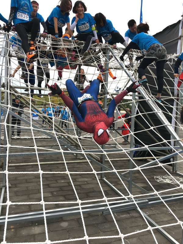 昨日的Columbia Tough Running極限酷跑障礙賽,成人參賽者需要完成10公里的賽道,跨越輪胎巨陣、橫渡天梯、扁帶之舞、穿越大墻、漂移攀巖墻、高空繩網(wǎng)挑戰(zhàn)等9種新奇障礙及耐力考驗(yàn)到達(dá)終點(diǎn),這是一條顛覆體能的線路,同樣也考驗(yàn)著參賽者的協(xié)調(diào)能力和膽量。有趣的是,在參賽隊(duì)伍中,還有隊(duì)員身著“蜘蛛俠”、“綠巨人”、“小怪獸”等裝扮,比賽中,隊(duì)員之間并沒有殘酷的爭奪,而處處皆是互相幫助的情景,如障礙跨越墻,對于有些女生有些困難,現(xiàn)場的隊(duì)員當(dāng)起了人梯,為素昧平生的人提供幫助。