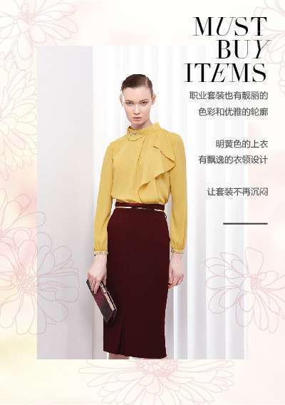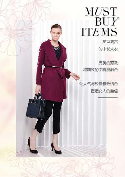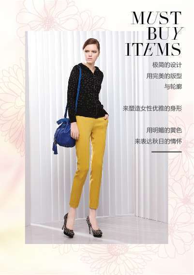 至境秋遇,JZ玖姿女裝2014新款運(yùn)用撞色、拼色等方式使用明色與暗色的交融,通過對(duì)不同面料的搭配和細(xì)節(jié)處理,在呈現(xiàn)秋日生機(jī)的同時(shí)表達(dá)成熟女性的時(shí)尚魅力。