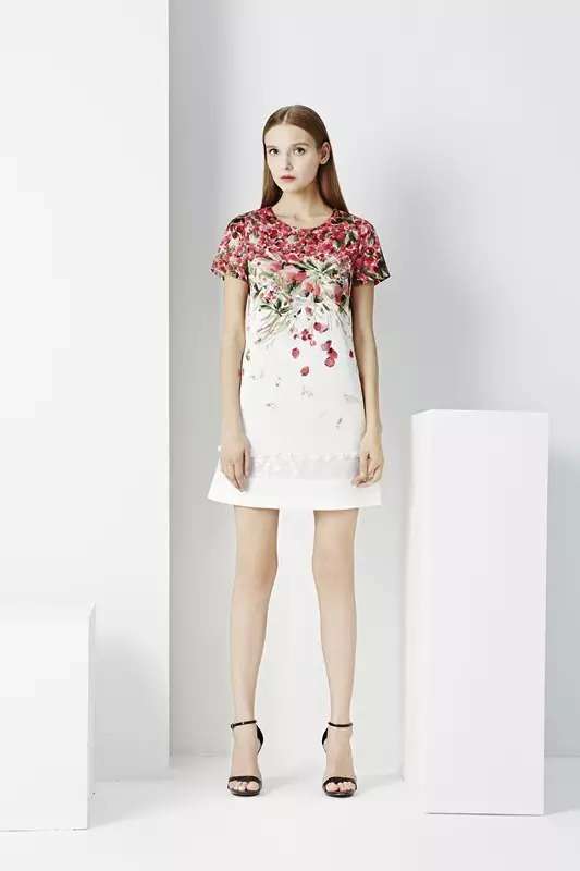 設(shè)計師將局部印花融入簡潔上衣、飄逸半裙及連衣裙自成一系列,以色調(diào)及層次修飾肌膚,釋放女性率性而優(yōu)雅的魅力。